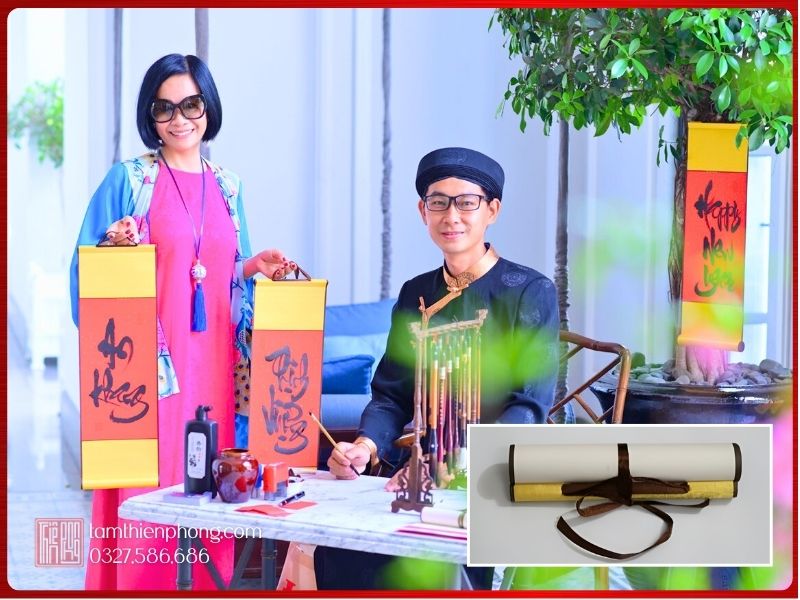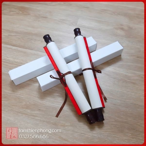 Để tiết kiệm tối đa chi phí tổ chức cho Dịch vụ ông đồ viết thư pháp, khách hàng có thể chọn option này. Với ưu điểm nhỏ gọn, người xin chữ có thể treo ở góc làm việc, góc học tập, treo cây mai cây đào hoặc làm bookmark chặn sách.