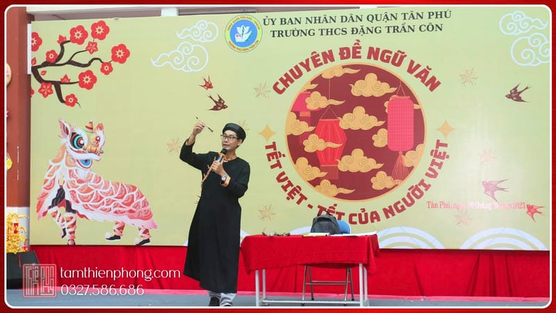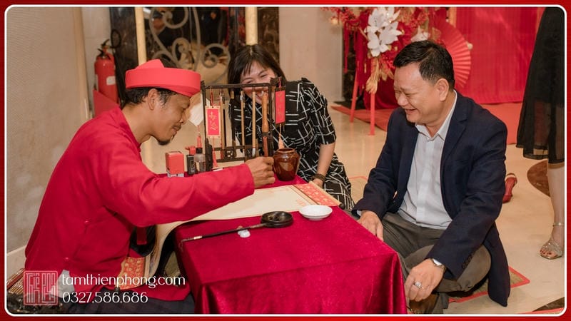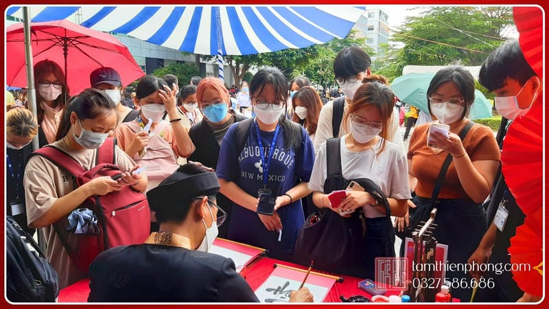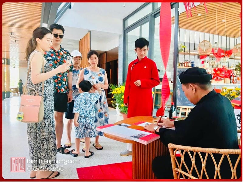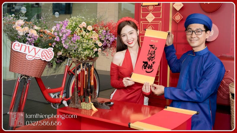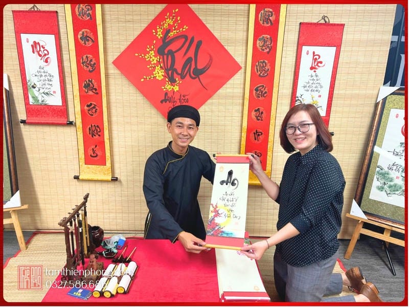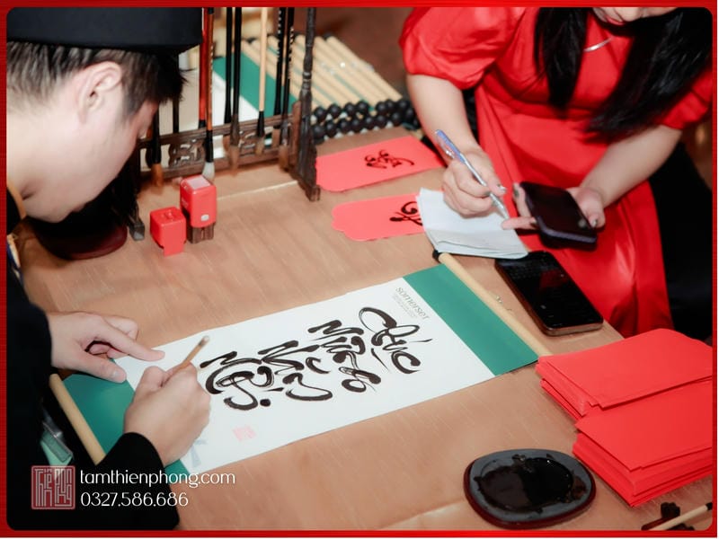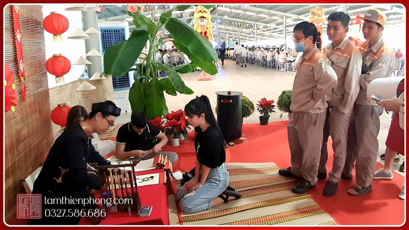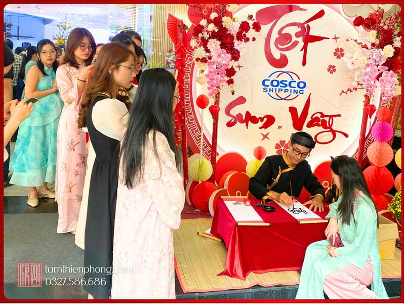 Công ty TNHH Tâm Thiên Phong chuyên cung cấp Dịch vụ Ông đồ tặng chữ thư pháp tại các sự kiện Year End Party (YEP), quảng bá thương hiệu, tri ân khách hàng, lễ khai trương, giao lưu văn hóa, tổ chức Workshop hướng dẫn trải nghiệm viết thư pháp, ... cho nhiều thương hiệu lớn với đội ngũ ông đồ chất lượng cao tại TpHCM và các tỉnh thành lân cận. Chúng tôi tự tin mang đến trải nghiệm hoàn hảo và ấn tượng tốt đẹp nhất cho khách hàng. Liên hệ ngay để được tư vấn. Trân trọng!