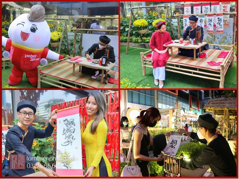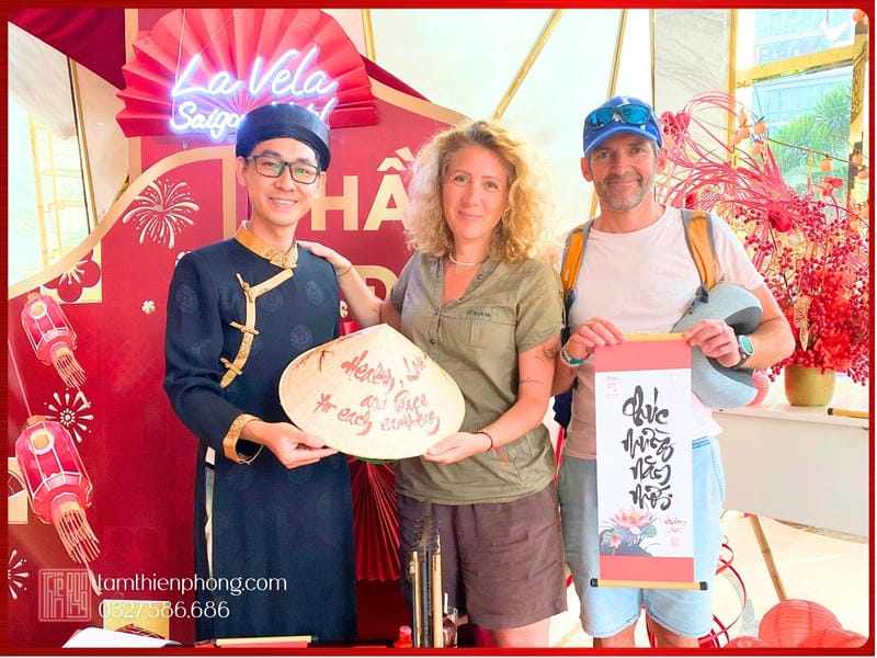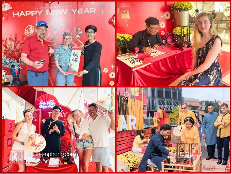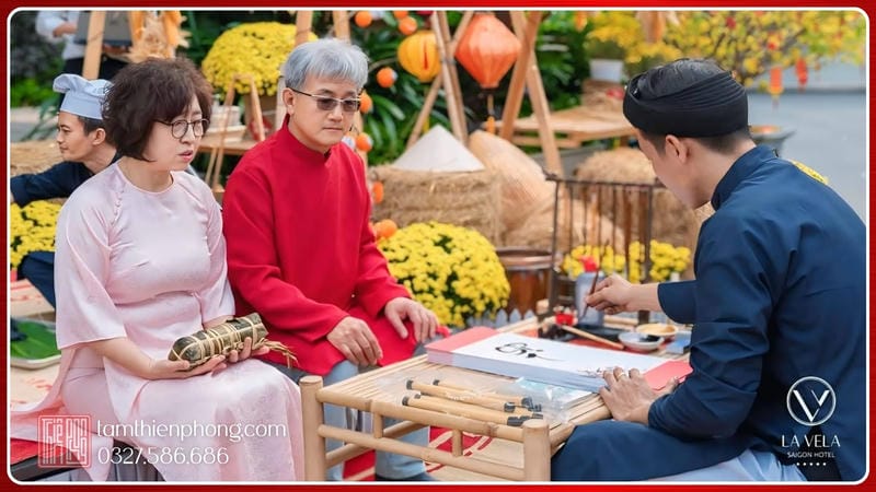 Ông đồ tặng chữ trên nhiều chất liệu, mang đến trải nghiệm thú vị cho du khách tại Khách sạn LaVela SaiGon
