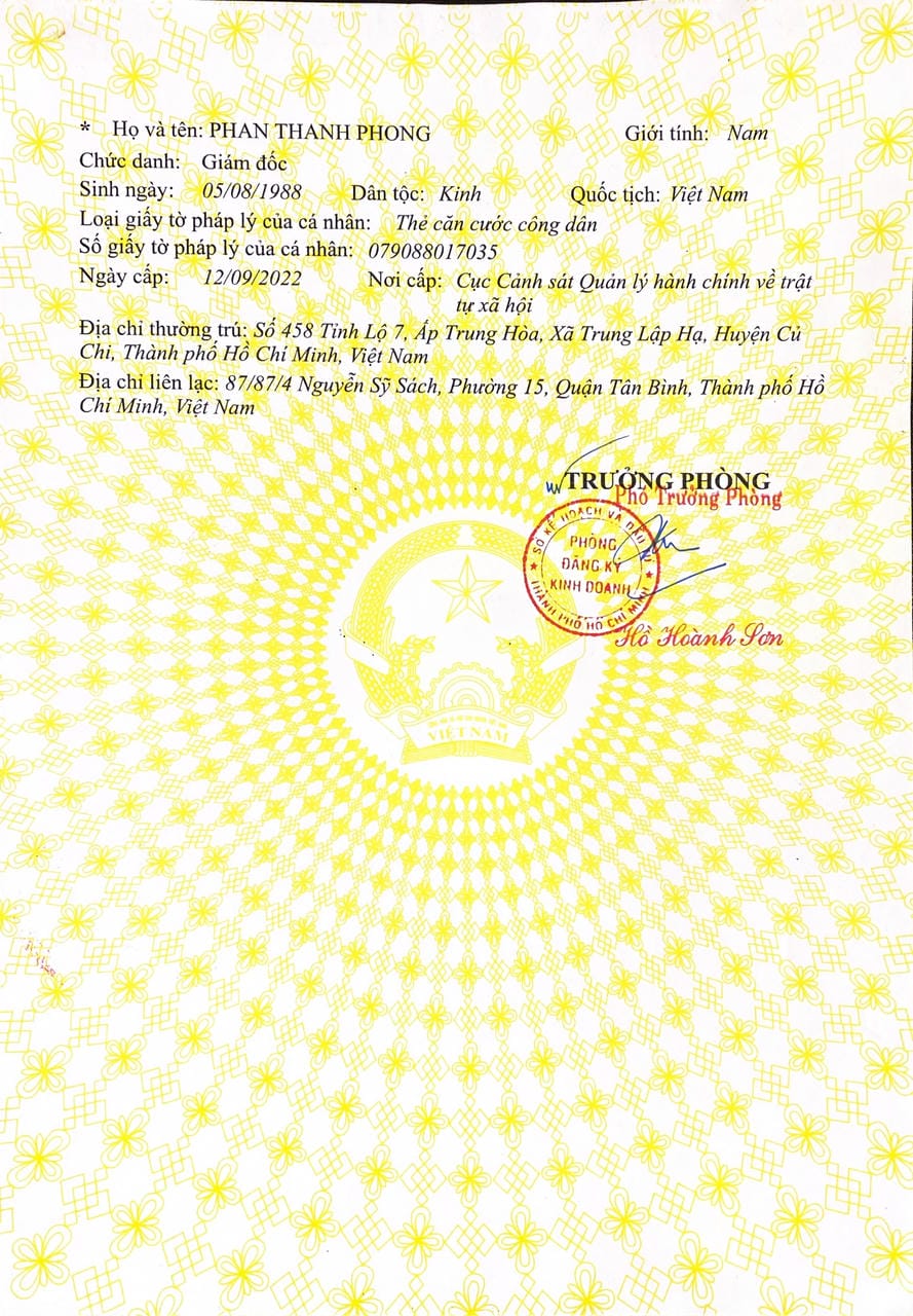 - Đại diện pháp luật: Ông Phan Thanh Phong – Chức vụ: Giám đốc