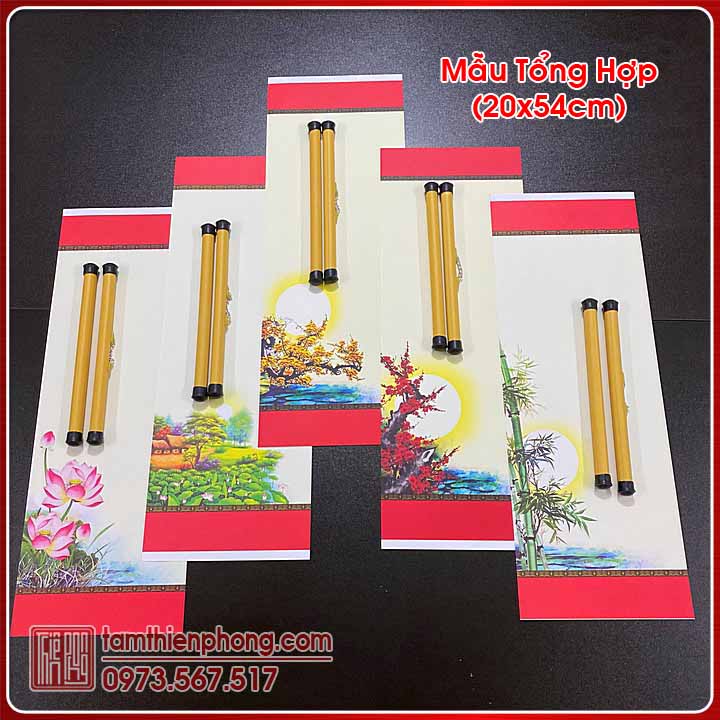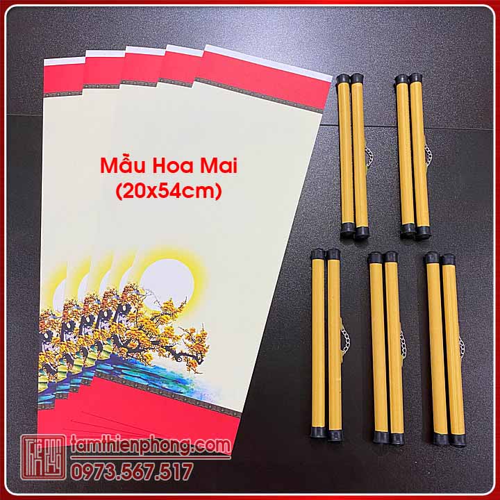 05 Tờ Giấy Viết Thư Pháp | Giấy Ốp In Hình 20x54cm - Có nẹp đi kèm