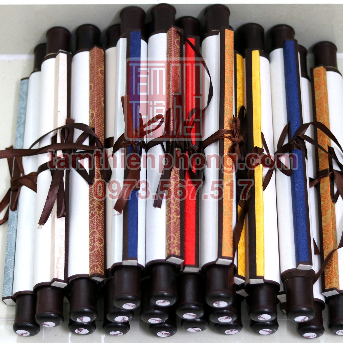 - Chất liệu: Giấy xuyến, bo lụa, trục bồi, có in hình sẵn.