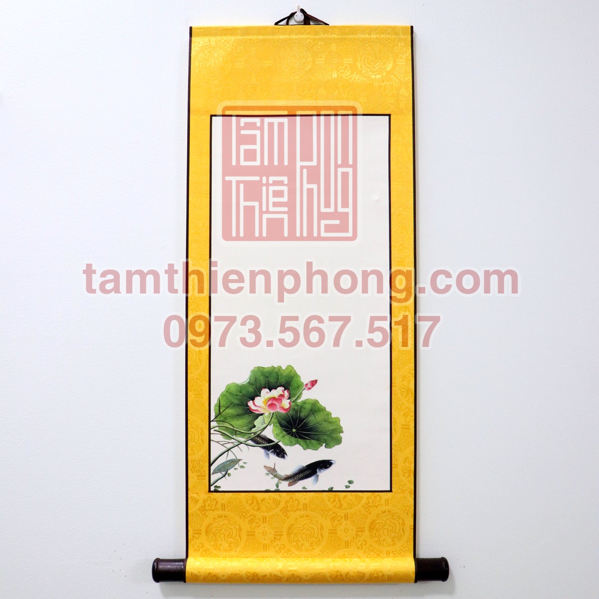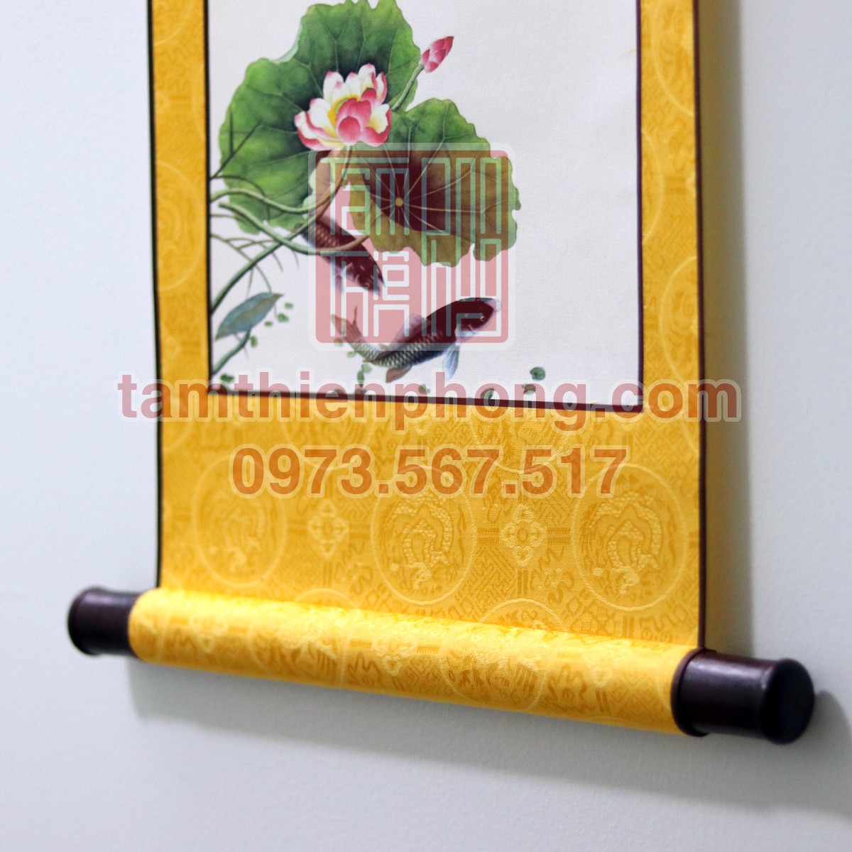 Liễn Lụa In Hình - Mẫu sen cá: