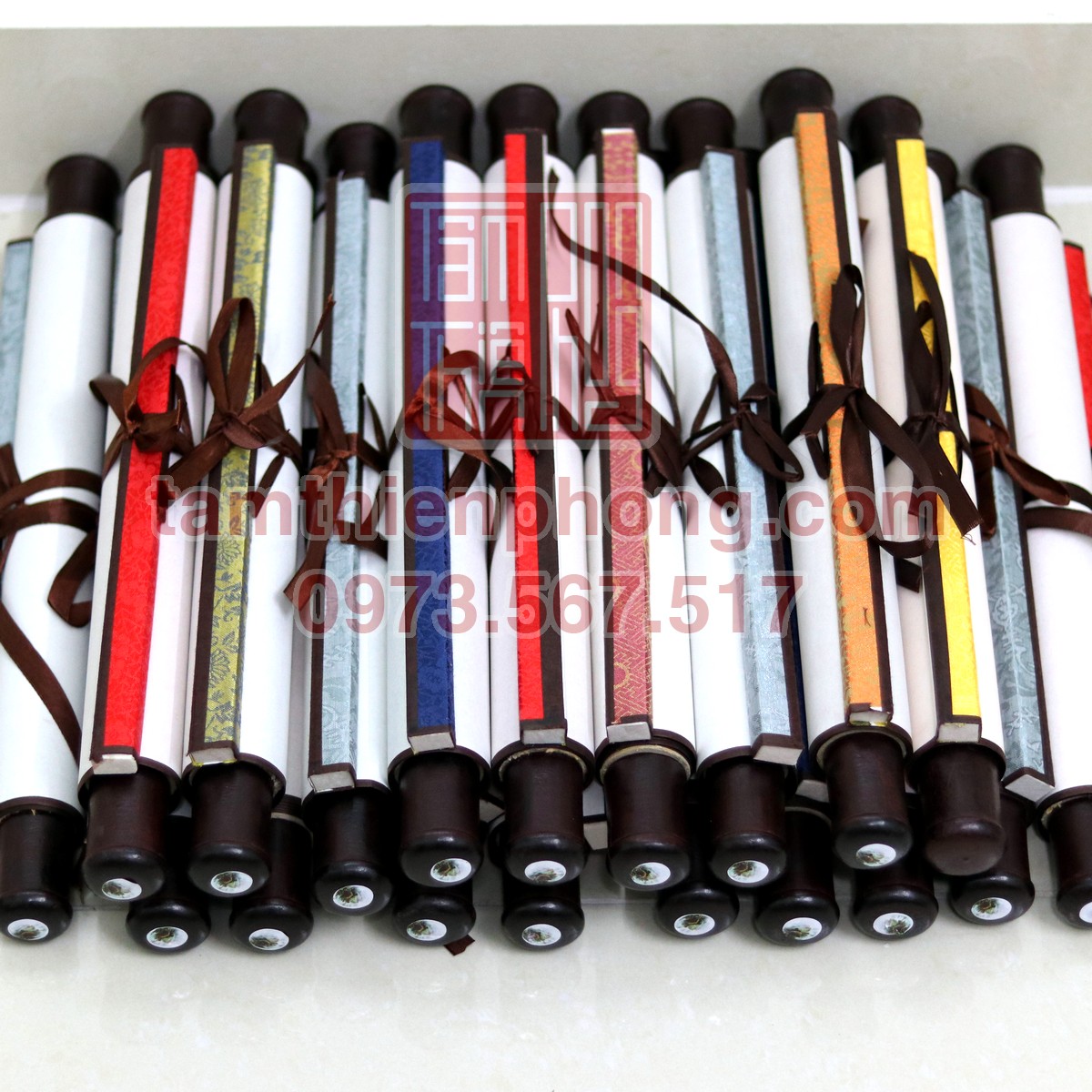- Chất liệu: Giấy xuyến, bo lụa, trục bồi, có in hình sẵn.